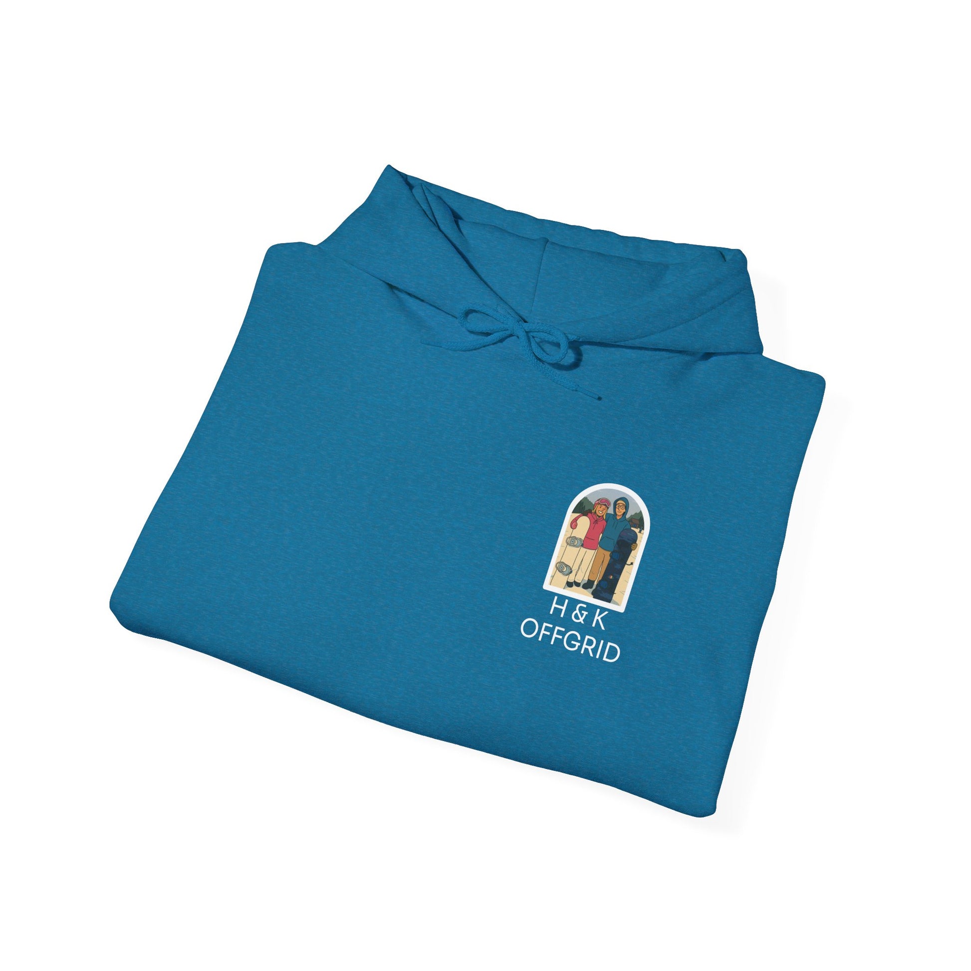 A soft, midweight hoodie built for adventurers who thrive in the cold, the H & K Offgrid Winter Edition Hoodie is designed with winter in mind—especially for skiers, snowboarders and those who live for snowy mountain days. This vibrant hoodie features a front chest logo inspired by a real photo of the brand’s founders, Hannah and Kaiden, capturing the spirit of chasing freedom off the beaten path.